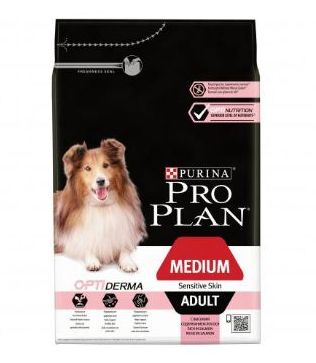 PRO PLAN "Adult Medium Sensitive Skin" с комплексом OPTIDERMA сухой 14 кг для собак средних пород 10 - 25 кг с чувствительной кожей Лосось
