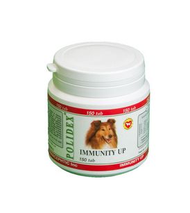 Показания к применению: Предназначен для повышения иммунитета ослабленных и часто заболеваю¬щих собак. Рекомендован к применению в период вакцинации. Содержит комплекс витаминов, минералов и аминокислот, положительно влияющих на иммунную систему и обменные процессы. Повышает образование антител. Восстанавливает и регулирует следущие процессы в организме: - повышает образование антител, защитных функций организма ( витамины С, А, группа В ); - стимулирует иммунную систему, действуя на клеточном и гуморальном уровнях (иммуномодуля-тор на основе растительных экстрактов); - обмен веществ (витамины А, В12, В5, С); - выработка энергии, метаболизм глюкозы, окисление жирных кислот и активация аминокислот (магний); - работа желез внутренней секреции (йод); - поддержка кроветворной функции организма (железо, марганец, медь; - метаболизм белков, антиоксидантное, противовоспалительное действие (гистидин); - стимуляция центральной нервной системы (лизин, фенилаланин); - улучшение секреторной функции поджелудочной железы и печени, регуляция обмена веществ (фенилаланин); Не содержит исскуственных красителей и отдушек. Способ применения и дозы: 1 таблетка на каждые 5 кг веса (в сутки) принимать или замешивать в пищу, применяется курсами 2-3 месяца (весной и осенью), а также постоянно в течение года с перерывами на 1-2 месяца, а также в период вакцинации. Побочное действие: Не вызывает аллергических реакций и нарушения пищеварения. состав 1 таблетки Вит.А - 250 ME BHT.D - 17,5 ME Вит.К - 40мкг Вит.С - 1,5 мг Вит.В5 - 0,25 мг Вит.В12 - 0,75мкг Вит.Вс - 0,75мкг Си - 0,04мг Fe - 0,5мг Мn - 0,03мг I - 15мкг ЛИЗИН - 30мг Фенилаланин - 35мг Триптофан - 8мг Гистидин - 30мг Иммуно-модулятор - 5мг