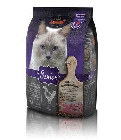 Леонардо корм для кошек Сеньор. Средняя продолжительность жизни наших кошек за последние два года значительно выросла и составляет в среднем 15 лет. Приблизительно начиная с 10 лет меняется потребность кошки в питательных элементах. Корм LEONARDO SENIOR учитывает эти изменения. Для защиты клеток от свободных радикалов корм LEONARDO SENIOR содержит муку из прессованной виноградной косточки VITIS с самым эффективным из всех известных пищевых веществ натуральным компонентом - процианидин. Пониженное содержание таких элементов, как: белок, фосфор и натрий берегут почки. Лецитин и L- карнитин улучшают работу сердца. Лецитин вместе с другими компонентами (пониженное содержание жира, жирных кислот Омега-3 и моносахаридов) снижает уровень холестерина и триглицидов крови. Цареградский стручок усиливает перистальтику и снижает предрасположенность к запорам. Высокое содержание ленолевой кислоты и жирных кислот Омега-3 улучшают состояние кожи и шерсти. Ценные элементы, полученные из дрожжей, укрепляют иммунитет и снижают риск заражения заболеваниями. Рыба, яйца и птица - поставщики высокобиологического ценного белка.